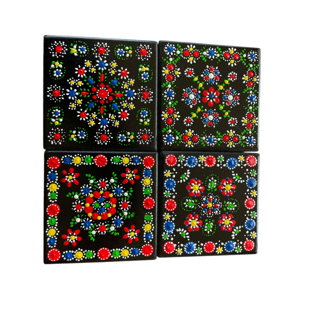 Set van 4 handbedrukte onderzetters