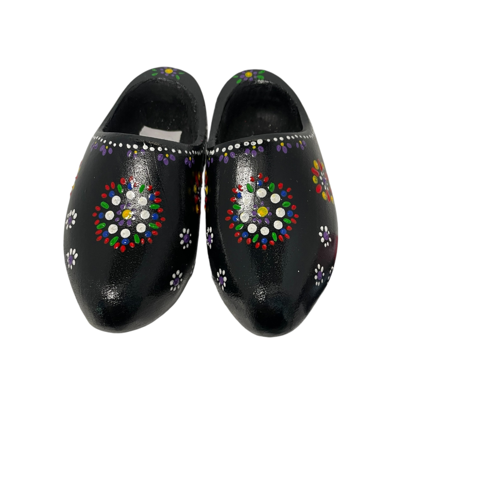 Breng een stukje Nederlandse traditie mee naar huis met deze prachtige draag klompen. Deze klompen hebben een zwarte ondergrond en zijn versierd met traditionele Staphorster stipwerkpatronen, gedrukt met stempels in diverse motieven.